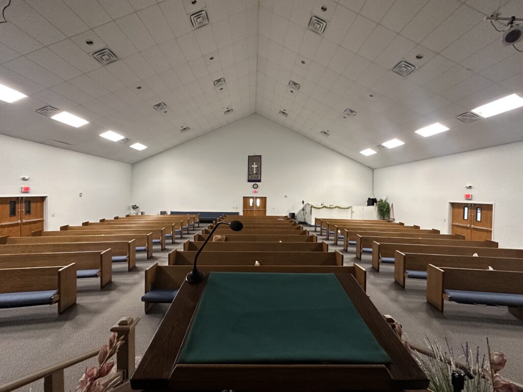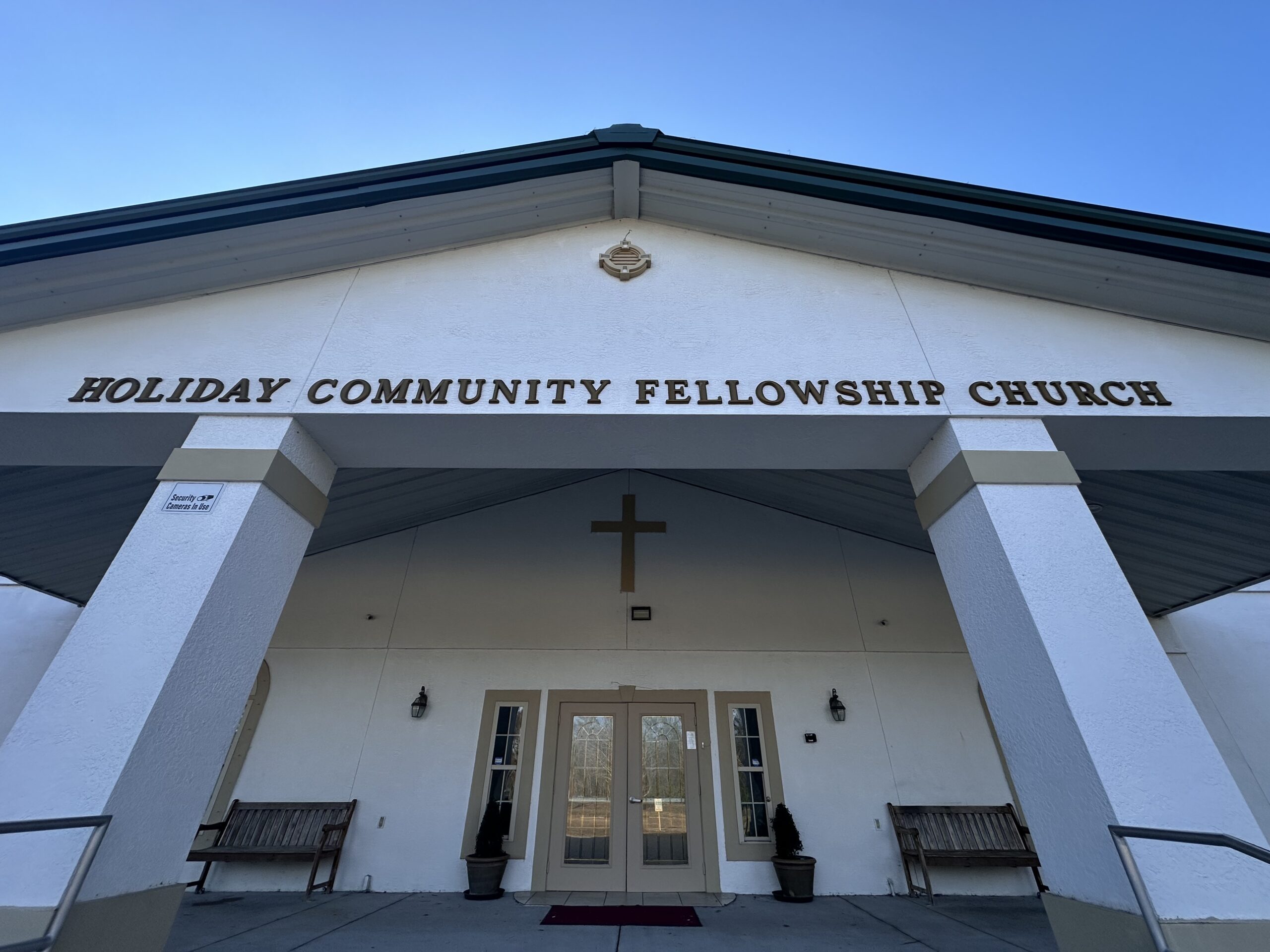 Generous donations helped furnish the church. The pews, pulpit, and candlesticks came from the Free Methodist Church in Syracuse, NY. Additional gifts—including an organ, grand piano, communion table, baptismal font, chairs, hymnals, kitchen cabinets, countertops, artwork, and a sanctuary cross—were contributed by local congregations and members. The church steeple was funded in memory of James Sterner. By trusting God’s timing, Holiday Community Fellowship Church completed its building within two years, dedicating it to God’s service in 2006.